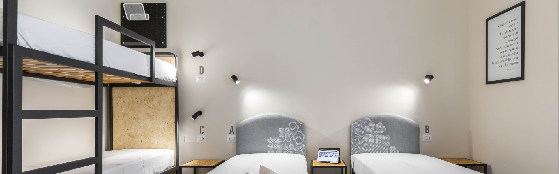 Questo dormitorio può ospitare fino a quattro maschi. Confortevole, pulito e accogliente, è dotato di bagno condiviso interno alla stanza.